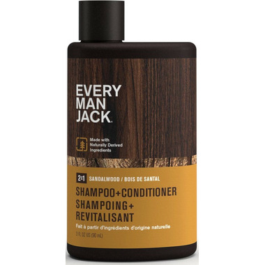 Deep clean from root to end with Every Man Jack Daily Shampoo + Conditioner Sandalwood.