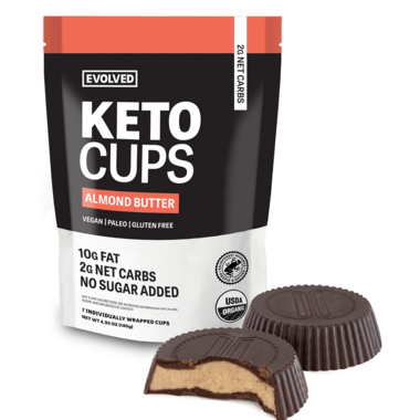 Almond butter keto cups with only 10g of fat and includes 7 individually wrapped cups.