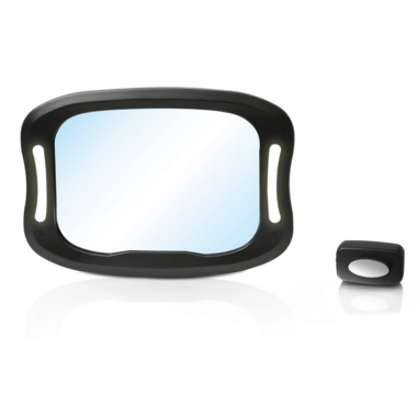 EZI Mirror LED is an extra wide child's mirror to place on the back seat of your car. Perfectly adapted to rear-facing car seats, it will allow you an easy and complete view of your child without having to turn around. Monitor your child from the driver's seat easily and safely. With this mirror-integrated LED night light, enjoy a clear view of your little one on nighttime commutes. Simply activate it from your seat using the remote control. This mirror is made from 82% recycled plasti and will provide many years of daily use.