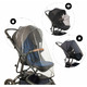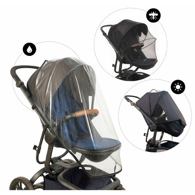 - 3 protections in 1: integrated mosquito net, sun visor and rain cover