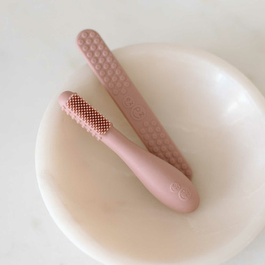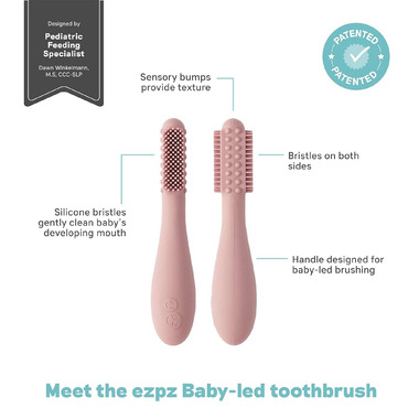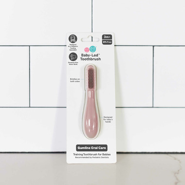 Oral health is critical for a babys growing mouth, feeding skills and speech development, and dentists recommend a toothbrushing routine before baby has their first tooth (usually between 3-6 months). It's best to allow babies to independently grab, hold and control the toothbrush making brushing less of a battle! The Baby-Led Toothbrush is a toothbrush designed for baby-led oral care, which encourages healthy oral habits and may help prepare your baby for starting solids.