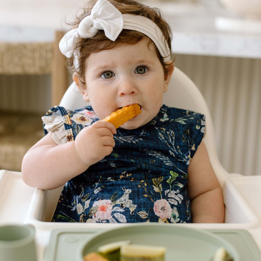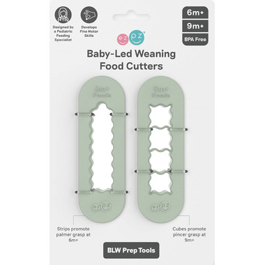 6m+ food cutter makes finger-length strips (perfect for BLW) that promote the palmar grasp.