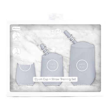 The Developmental Cup Set is a training set that teaches babies, toddlers and preschoolers to drink from an open cup and safely use a straw.