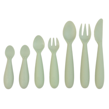 Details: Set includes Tiny Spoons (2-pack), Mini Utensils (spoon + fork) and Happy Utensils (spoon + fork + knife)