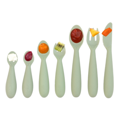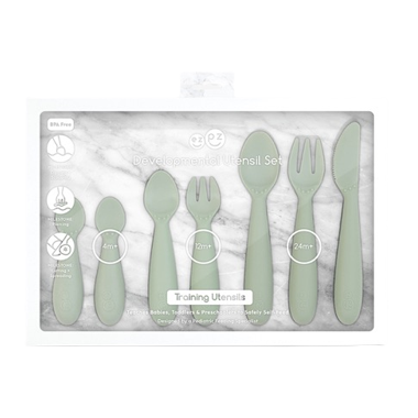 The Developmental Utensil Set provides babies, toddlers and preschoolers with the training tools they need to safely use utensils and self-feed.