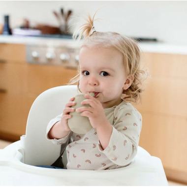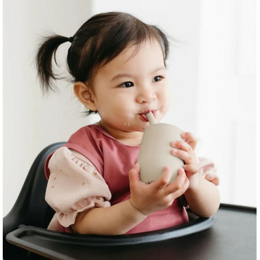 Learning to drink from a straw is an important developmental milestone that develops lip rounding and promotes speech development. The ezpz Mini Cup + Straw Training System teaches toddlers to drink from an open cup and safely learn to use a straw.