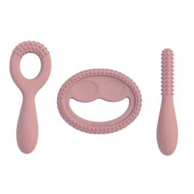 ezpz Baby-led Oral Development Tools are sensorimotor devices designed to help babies and toddlers practice their feeding, munching, biting and chewing skills. Each set includes 3 pieces (Loop, Smile and Stick Development Tools).