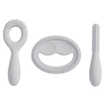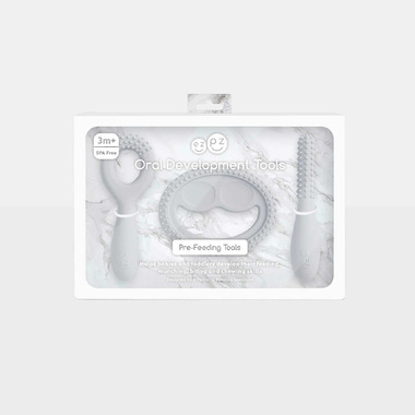 ezpz Baby-led Oral Development Tools are sensorimotor devices designed to help babies and toddlers practice their feeding, munching, biting and chewing skills. Each set includes 3 pieces (Loop, Smile and Stick Development Tools).