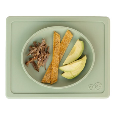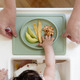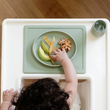 The Tiny Plate provides an open plate design to promote self-feeding + utensil use. The plate supports the traditional method of feeding (purees), as well as the baby-led weaning method of feeding (baby-led strips of food).