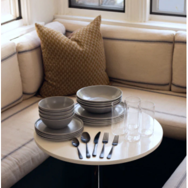 Materials: Artisan-crafted stoneware, Local Portuguese clay, Lead-free semi-matte glaze. NOTE: All semi-matte ceramics are susceptible to superficial marks from your flatware. They may be removed with a scouring powder.
