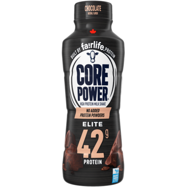 Enjoy a great tasting milk shake as part of your workout routine. With 42g of protein, Core Power Elite Chocolate delivers even more protein than the classic Core Power. Made with real partly skimmed milk. Lactose free. No sugar added.