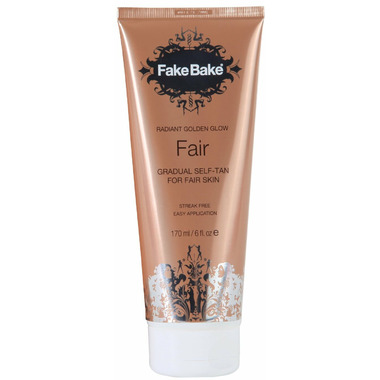 Self-tan lotion for fair skin. Builds a gradual tan over time. Fake Bake Fair Self-Tan Lotion has been specially formulated for people with fair complexions. The easy glide formula and subtle "show where it goes" cosmetic colour guide enables even the most inexperienced self-tanner to apply a self-tan with ease and confidence. A combination of cutting edge, naturally derived tanning agents DHA and Erythulose work with the melanin cells which lie in the top layers of your skin to develop into a tan that compliments your skin tones for a perfectly natural looking result.