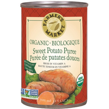 Not only does this Farmer's Market Organic Sweet Potato puree make a wonderful vegetable side or main dish, its natural sweetness lends itself to a wide variety of delicious recipes. Think sweet potato pancakes, muffins, biscuits or even bisque. Farmer's Market has made it even easier to incorporate the luscious taste of sweet potatoes into your everyday recipes.