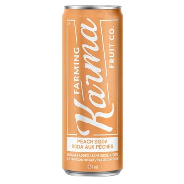 Farming Karma Fruit Co. Peach Soda. No sugar added and not from concentrate.