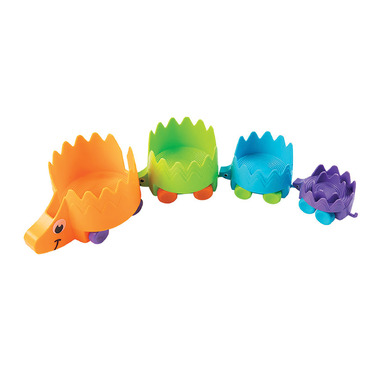 Stack, connect, and let your imagination roll! Burrowed within the spines of each hedgehog is another hedgehog, smaller and cuter than the last. Unstack them one by one to discover smiling faces, zig-zagging textures and colourful rolling wheels. Each one is a delightful new friend. But then - connect them tail to nose, big to small, papa to baby. Little ones can’t wait to pull the whole family along on a vibrant pretend-play adventure!