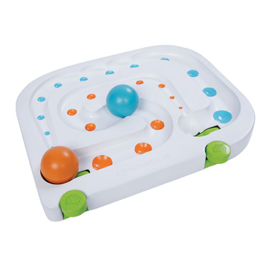 Fascinating physics inspires hours of play! Press one of the two buttons to launch and watch as the gradually widening track propels the ball forward. Send the blue ball rolling down the long zig-zaggy track. Send the orange ball swirling along the winding curvy track. Or, launch them both at the same time to see which one’s the fastest! Exploration and experimentation are on a roll the moment kids get their hands on the RollAgain Maze.