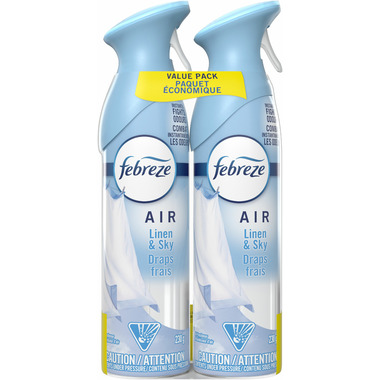 In even the cleanest homes, odours are inevitable, which can leave you and your household in a funk. Febreze Air is your go-to room deodourizer for tackling those unwanted smells. Designed to instantly restore any space with the just-cleaned freshness you love. Made with powerful odour fighters, you can spray away stink confidently - whether you're in the kitchen, bathroom, garage, living room, or any room where bad smells happen. And with over 40 scents to choose from, you can breathe happy anywhere and everywhere in your home. Bring the outdoors in with the fresh-off-the-clothesline scent of Air Linen & Sky. Febreze Air Spray is made with a super-fine mist with particles with freshness that stays in the air for up to 6 hours. This non-toxic air freshener has a 100% natural propellant, and a nozzle that delivers a consistent, full spray from the first to very last use. Next time pop-up odours bring you down, grab the odour-fighting power and long-lasting scent of Febreze Air.