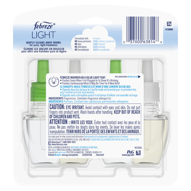 Looking for a lighter way to freshen up instead of masking odors with heavy scents? Clear the air with a Febreze LIGHT Fade Defy PLUG Air Freshener refill and eliminate odors with no heavy perfumes. With Fade Defy Plugs digitally controlled scent release, you'll get a pluggable freshness that lasts 50 days (on low setting).