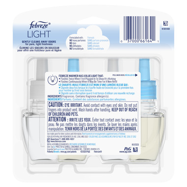 Looking for a lighter way to freshen up instead of masking odors with heavy scents? Clear the air with a Febreze LIGHT Fade Defy PLUG Air Freshener refill and eliminate odors with no heavy perfumes. With Fade Defy Plugs digitally controlled scent release, you'll get a pluggable freshness that lasts 50 days (on low setting).