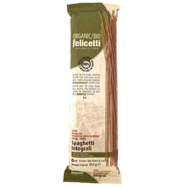 Felicetti Organic Pasta Wholewheat Spaghetti, the Italian choice. This organic pasta is made fresh in the Dolomite Mountains in Italy.
