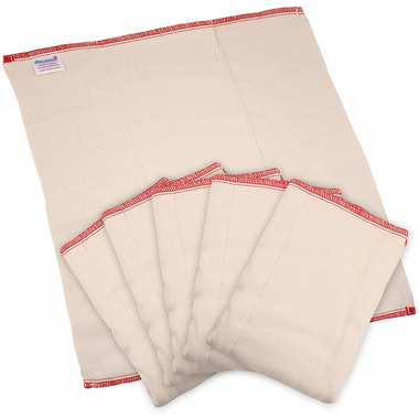 These are the first prefolds I’ve used and they’re great, super absorbent. Our baby often gets very fussy with a wet diaper and he never fusses with these.