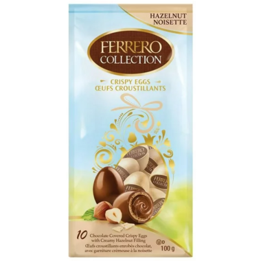 This season, enjoy milk chocolate covered crispy eggs with a creamy hazelnut filling. Ferrero Rocher all dressed up for Easter joy.