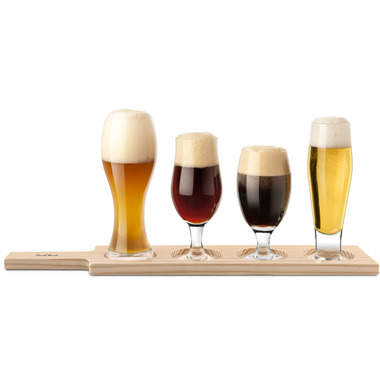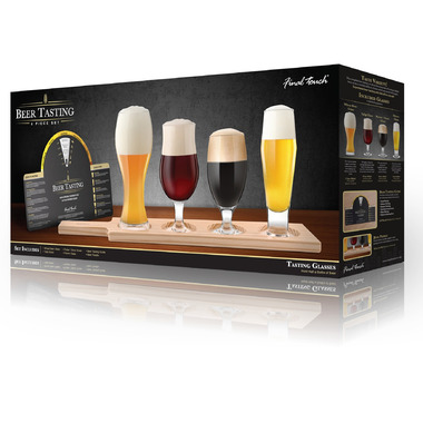 Perfect for the beer connoisseur or the newbie, this Final Touch tasting set include 4 different beer glasses, tasting guide and wood serving paddle.