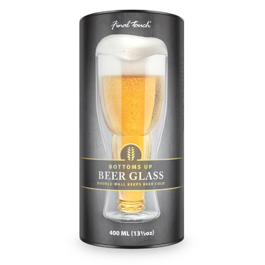 The Final Touch Bottoms Up Beer Glass is the stylish way to drink your beer. This beer glass is made of hand-blown durable borosilicate glass and crafted to perfection. Designed with double wall glass so your warm hands will not take the chill off your beer. Go and enjoy a cold one with our Bottoms Up Beer Glass.