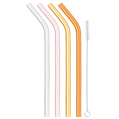 Final Touch Reusable Glass Straws Set Clear, Pink, Yellow & Orange