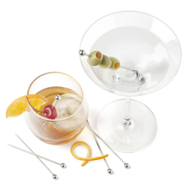 Use these simple yet elegant cocktail picks to skewer garnishes like olives, cherries & melons. Includes 6 durable polished stainless steel picks that are reusable & dishwasher safe. Not only are these picks great for dressing up drinks, they can also be used for cheese, meat & fruit platters.