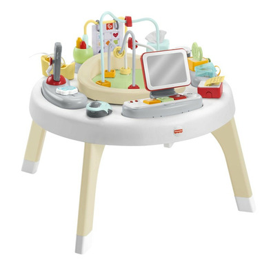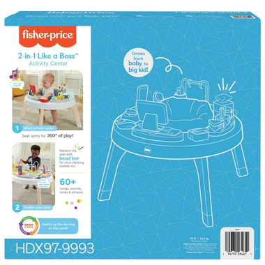 Hold their calls because your little CEO will have so much do in the Fisher-Price 2-in-1 Like a Boss Activity Enter. Your baby can start off sitting in the entertainer's spinning seat and interacting with fun activities around them. From a shape-sorter coffee mug to an interactive "laptop" that plays music, sounds and songs, baby has everything they need for a productive day playing from home. Then, as your baby grows, replace the seat with a clacker bead bar to transform the infant activity centre into a cool toddler table for standing-desk play.