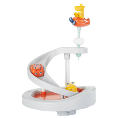 ?Your little monkey will have a blast in this 2-in-1, safari-themed entertainerit "grows" along with your child! As your baby sits in the comfortable fabric seat, a platform full of animal toys and exciting activities encourage your little one to spin around and explore all 360 degrees of fun. Then, when your toddler is ready, convert the 2-in-1 Sit-to-Stand Activity Center to a play table and attach the ramp for sliding play! Fun songs and sounds reward your baby's actions, keeping the exploring fun going and going. Where development comes into play Gross Motor: From sitting and interacting with the activities to standing and cruising around the table to play with the toys & ramp, this entertainer helps get your baby's gross motor skills going and growing! Sensory: Bright colors and a variety of sounds and textures help stimulate your baby's visual, auditory and tactile senses. Curiosity: As little ones explore the variety of activities, including the spiral ramp, they're introduced to cause and effect. Use only with a child who can hold head up unassisted and who is not able to walk or climb out of product.