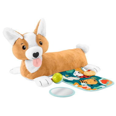 The Fisher-Price 3-in-1 Puppy Tummy Wedge helps make tummy time a little less ruff for your baby. This cute and supportive pup is always ready to play as your little one grows from tummy time to sit-at play, to early role-play care for their puppy pal. The plush dog tummy wedge features a crinkle panel and 3 activity toys, which help strengthen your baby's gross motor skills and engage their senses of sight, hearing and touch.