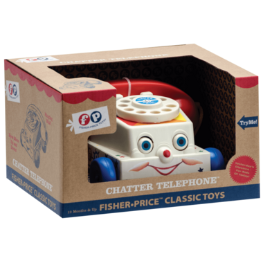 This spunky little phone is sure to captivate any audience. With its rolling eyes, ringing old school rotary dial, wheels that spin and a mouth that just loves to chatter, this pull along telephone will have little ones chatting away all day long! Since 1930, Fisher-Price has been in business to create toys that fascinate and stimulate a child's imagination.