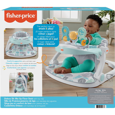 The Fisher-Price Deluxe Sit-Me-Up Floor Seat is a comfy spot where your baby can play, snack and check out the world around them. The infant seat's soft fabrics and wide, sturdy base gives your baby the extra support they need to sit up and snack with the removable tray. When it's time to play, place the toy bar insert into the tray for bat-at fun. The seat also folds flat, making it easy to store or take with you as you travel. Use only with a child who is able to hold their head up unassisted and who is not able to climb out or walk.