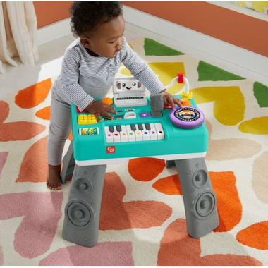 Little music-makers can work their fine motor skills while rocking out to Puppys freshest beats with the Laugh & Learn Mix & Learn DJ Table activity center from Fisher-Price. This interactive learning toy and activity table features a piano with 3 ways to play, plus 12 fine motor activities and 3 Smart Stages learning levels to keep the learning fun going as your baby grows. Keep the table legs off for sit-at floor play, then attach when your baby is ready to stand up and DJ. Use the globe button to select a language: English or French