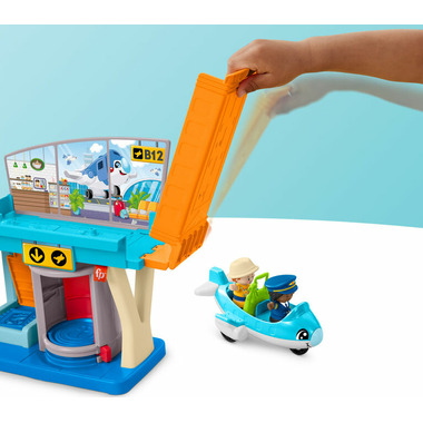 - Toddlers can embark on hours of travel-themed pretend play with this Little People airport playset