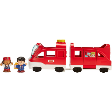 Toot, toot! All aboard the Little People Friendly Passengers Train! With realistic train sounds, fun songs, and a light, toddlers can create all sorts of fun travels with their Little People friends, Koby and Conductor Kathy! When they press Conductor Kathy into her seat, they'll hear phrases and songs about following rules and respecting others.