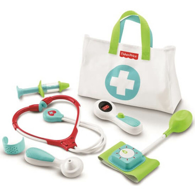 Is there a doctor in the house? There is now! With the Fisher-Price Medical Kit, preschoolers can throw on their white coats and dive right in to role play fun. Mini-MDs can "listen" to their patient's heart with the stethoscope, "check" their temperature with the thermometer (press the button to go from "sick" to "well"!), take a peek inside their ears with the otoscope (ewww earwax!) or pump the blood pressure cuff to see the gauge spin! And, say bye-bye to pretend boo-boos with the toy bandage cuff. Even getting a shot becomes fun with the toy syringe.