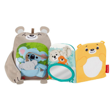The Fisher-Price Sit & Snuggle Activity Book is a page-turning sensory adventure for your baby. This soft book has 5 animal-themed pages, each with its own exciting sensory activity for your baby to discover. The book can stand on its own for babies to play with as they push up during tummy time, and the plush bear friend is perfect for comforting cuddles. With a full page to crinkle and a big mirror to gaze into, plus a peek-a-boo leaf, koala teething toy, and more, this soft activity book and plush toy is the perfect snuggle buddy for your busy little bear.