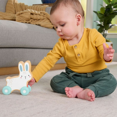 • Fisher-Price Wooden Push-Along Bunny Toy Vehicle for Baby Crawling Play
