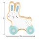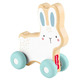 • Bunny-themed wooden push-along toy vehicle that grows with baby from sit-at to crawling play