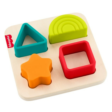 • Fisher-Price Wooden Silicone Puzzle, Shape-Sorter Developmental Toy for Baby