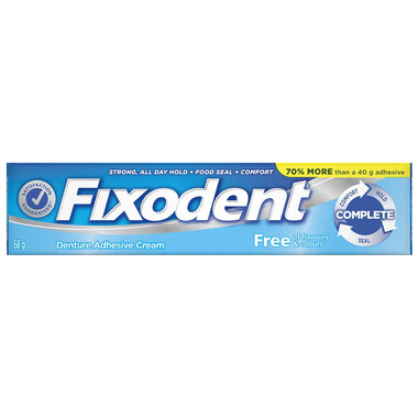 Want a denture adhesive that's free of artificial flavours and colours? Fixodent Free gives you that, while guaranteeing a great fit and a long, strong hold. Laugh, talk, eat, and drink with comfort and confidence with Fixodent Free.