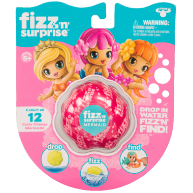 Watch as it bubbles and fizzes to reveal a beautiful mermaid collectable figure! Each one with different features and poses! Dip them in warm or cold water and see their tail magically change color before your eyes! With 12 characters to find and collect, you'll have so much fun collecting them all!