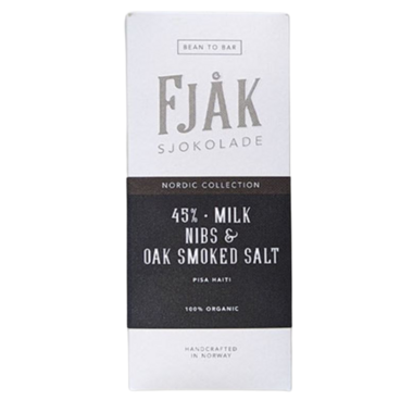 Fjak Nibs & Oak Smoked Salt 45% Milk Chocolate Bar