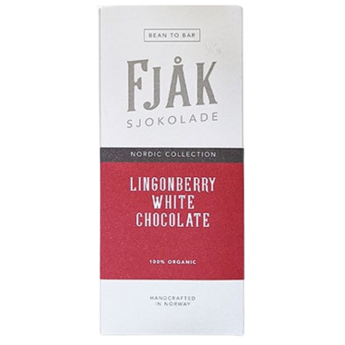 Fjak White & Lingonberry is a creamy white chocolate paired with tart, Nordic mountain lingonberry.