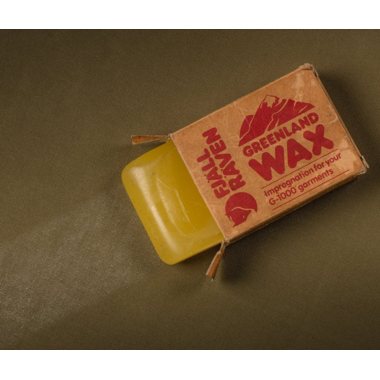 Wax impregnation for garments in G-1000 fabric. Rubbed on and melted in for a water resistant and durable surface. Made from high-quality paraffin and beeswax, which makes Greenland wax more gentle towards both people and the environment than chemical-based impregnation. A wax block of 100 grams will be enough to wax about ten garments.