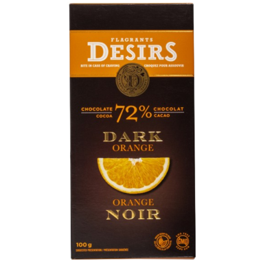 Flagrants Desirs Premium Dark Chocolate Bar 72% Cocoa with Orange.