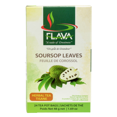 FLAVA Soursop Leaves Herbal Tea. A taste of Greatness! This product contains natural ingredients only. It's gluten free and non-GMO.